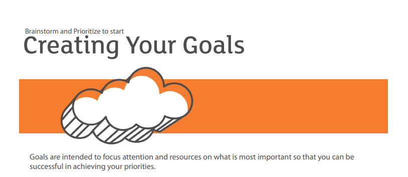 This resource helps you start thinking about your priorities and identifying SMART Goals.